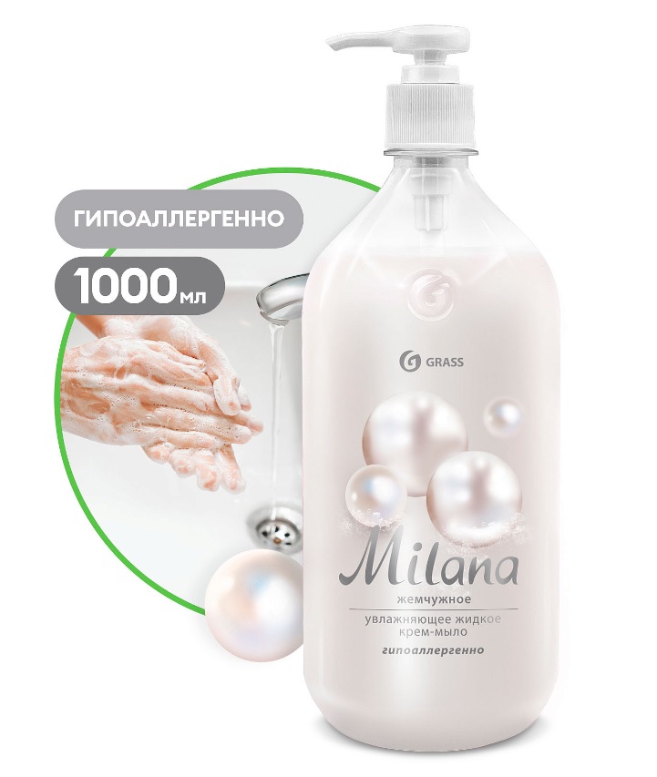 Мыло-крем жидкое Milana Грасс 1л с дозатором в ассортименте, РФ (Молоко и мед)