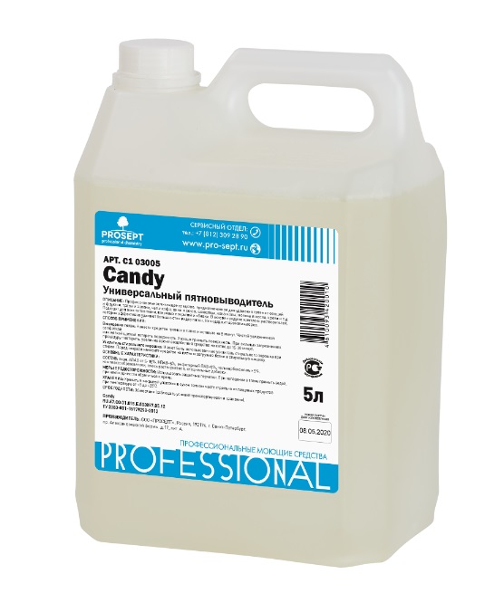 Профессиональное чистящее средство Candy, предназначенное для удаления въевшихся пятен от овощей и фруктов, травы и зелени, чая и кофе, вина и соков, шоколада, кока-колы, молока и масла, крови и т.п.