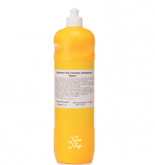 Средствo для чистки сантехники «SHINE» – кислотное чистящее средство. Используется для удаления загрязнений на ваннах, раковинах, смесителях, унитазах и другом сантехничеком оборудовании. Рекомендуется для использования в таких объектах как детские сады, школы, поликлиники, больницы, предприятия общественного питания, объекты торговли, коммунальные службы, продовольственные рынки.
