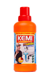 KEMI Professional - гранулы - сильнодействующее средство для удаления особо сильных засоров в канализационных и сливных трубах. Растворяет жиры, волосы, грязь, остатки пищи и другие загрязнения, не повреждая труб. Уничтожает микробы и устраняет неприятные запахи. Предназначен для всех видов труб. По эффективности превосходит жидкие аналоги в 4-5 раз.