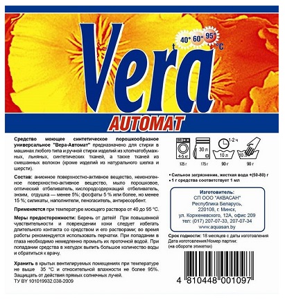 Предназначено для стирки в автоматических стиральных машинах, машинах активаторного типа и ручной стирки изделий из хлопчатобумажных, льняных, синтетических тканей, а также тканей из смешанных волокон (кроме изделий из натурального шелка и шерсти).