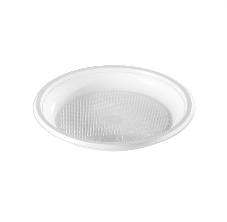 Тарелка одноразовая, круглая. Используется для сервировки горячих и холодных продуктов питания.